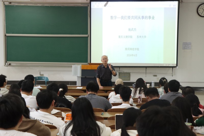 4月25日上午苏州大学博导施武杰教授应邀到数统学院为师生作报告,院长郭嵩主持报告会。