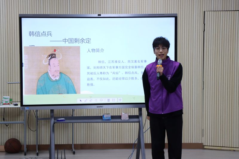 衡佳禾同学借韩信点兵这一历史典故,生动讲述了中国古典数学定理,将传统文化与现代教育完美融合,提升了学生们的文化自信及对本土数学成就的认识。