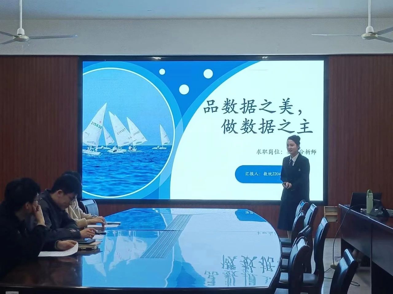 2204班陈宸同学的职业规划是成为一名高素质数据分析师。她以ppt的形式论述了自己对于职业生涯规划的理解,进一步加深了同学们对个人未来走向和职业发展的认知,激励同学们树立明确的职业发展目标与理想。