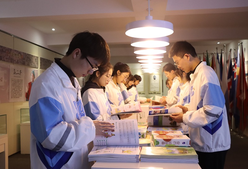 图为学生阅览多语种孔子学院教材。记者 冯媛 摄
