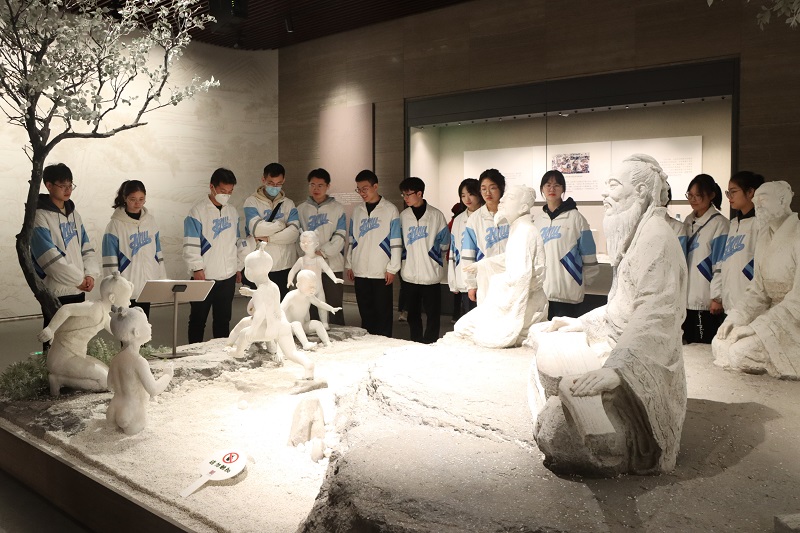 在孔子博物馆中,大家通过对孔子的时代、孔子的一生、孔子的智慧、孔子与中华文明、孔子与世界文明等八个展区历代文物、历史图片、文字介绍、视频展示、实物场景、沙盘模型等的参观,对孔子教育思想和儒家文化有了全景式、沉浸式的体验和感受。师生党员在观展过程中,跟随体感互动,学习拜师礼仪;通过互动媒体,阅读论语与孔夫子对话;亲自动手鼓瑟击磬,聆听古代乐器的美妙音色,通过实境体验感受了历史文化和现代科技交互融合,犹如穿越千年与孔子对话,体悟了孔子治学弘道、教书育人、人生哲学、治国理政的智慧和思想,带来了心灵的震撼,强化了自身的教育情怀。师生联合第二党支部书记王白丽表示,通过参观学习,对孔子的教育思想,当代教育的使命、意义和真谛有了更进一步的认识。