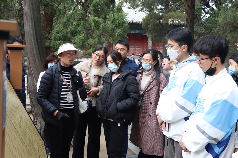 在曲阜孔庙万仞宫墙下,大家聆听了孔子及儒家思想概述;在孔庙杏坛前,大家感悟了“不义而富且贵,于我如浮云”;在“戒贪图”前,大家驻足凝视:一只猛兽,贪婪至极,妄想吞日,一跃而起,坠海而卒。通过现场教学,大家深刻感受到了中华优秀传统文化的智慧力量,一致认为,这既是一场实景式的现场教学,更是一堂生动的微党课,将中华优秀传统文化内涵、高校教师师德修养和师范生核心价值观塑造有机结合起来,大家的思想得到洗礼,党性得到了锤炼。学生党员吉羽彤表示自己作为一名定向师范生,非常珍惜这样一次文化研学之旅,认真汲取2000多年前中国圣贤的智慧,将在孔子故里感受到的文化气息、人文气质带到平时的数学专业学习和个人全面发展中,不断加强自身道德修养,做一名德才兼备的新时代师范生。