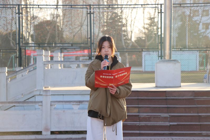 2403班新生代表龚姜一以“青春因梦想而绚丽,人生因奋斗而精彩”为主题发言。她表示我们要以实现中华民族伟大复兴为己任,呼吁同学们要坚定理想信念、志存高远、脚踏实地,以奋斗之底色展青年之担当。