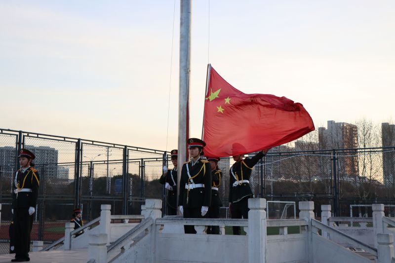 活动在庄严的升旗仪式中拉开序幕,红日初升,其道大光,升旗手振臂一挥,五星红旗在激昂的国歌声中迎风展开,全体师生肃然注视。