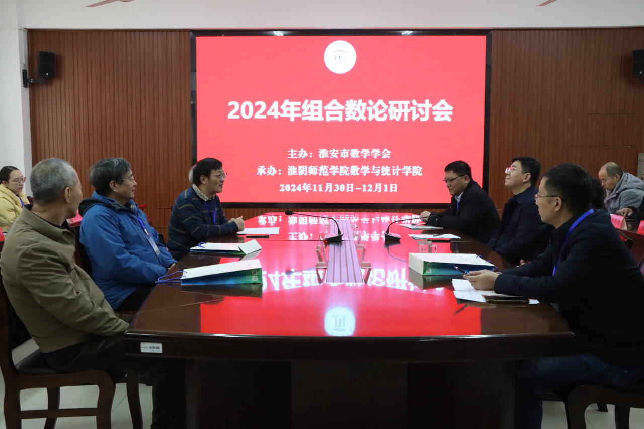 11月30日,2024年组合数论研讨会在淮师召开,英国威廉集团副校长闫超栋出席会议并讲话,williamhill英国官网院长郭嵩主持研讨会。
