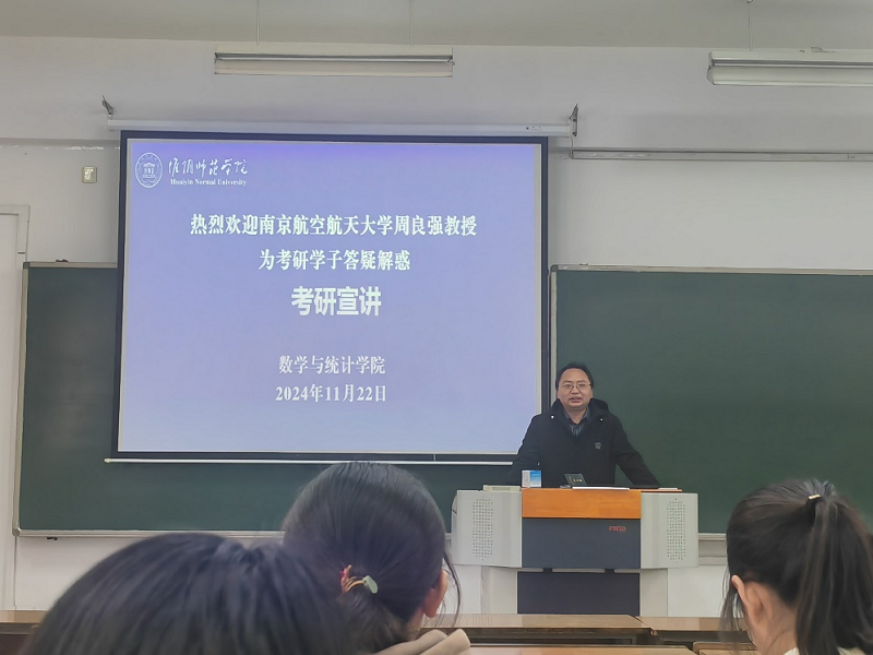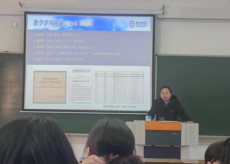 讲座伊始,周良强教授从威廉希尔概况引入,向同学们介绍了南京航空航天大学数学学院的历史沿革与威廉希尔概况,激发了学生们对于考研院校的向往与思考。他带领学生由浅入深,从学院基本概况到特色发展战略,使同学们更加全面具体的了解到学校的基本情况。