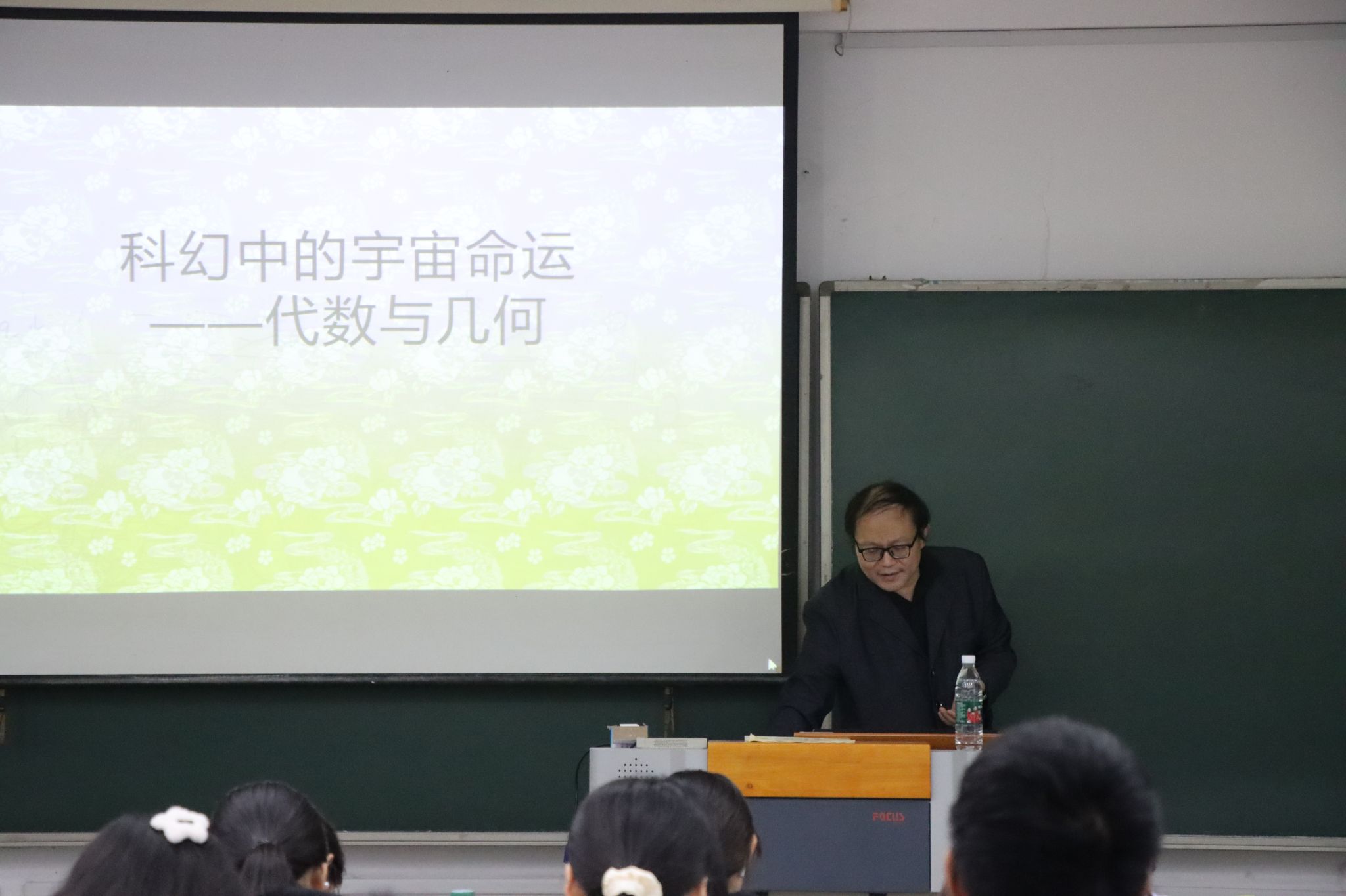 他指出数学模型与宇宙膨胀问题的关系,解释了一种可能的宇宙命运,同时分析了科幻作品中常出现的宇宙坍缩假说的数学依据,并介绍了暗物质和暗能量在宇宙命运中的关键作用,通过复杂的数学计算和间接观测证据可以推测其引力作用。引人入胜的科普内容让同学们沉浸其中,对于数学的重要性有了更进一步的认识。丰富的科学知识为学生们带来一场知识与想象交织的盛宴,开启了他们对宇宙奥秘的全新思考。