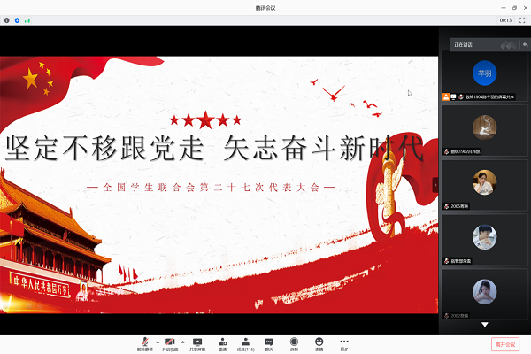 翔宇网10月17日电(记者 陈杭钰 吕玮然)为响应全国学联学习习近平总书记贺信精神的号召,10月17日上午,williamhill英国官网召开了主题为“坚定不移跟党走,矢志奋斗新时代”全国学联二十七大习近平总书记贺信和致词精神线上学习会议。会议由高年级学生王永帆泉和陈芊羽主持,数统学院学生会团委各成员参加会议。