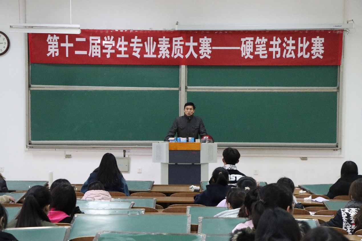 为进一步提高师范生书法技能,弘扬中华民族书法传统文化,11月25日,数统学院在理工西阶103开展硬笔书法比赛暨硬笔书法培训讲座。数统学院退休老师马强应邀主持比赛,担任评委为选手打分,并于赛后为数统学院学生开展硬笔书法培训讲座。