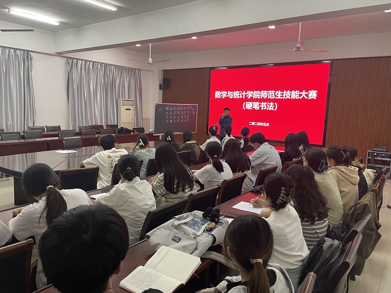 为提升师范生教学能力,强化教学核心素养,贯彻落实规范教学的基本理念,williamhill英国官网于5月30日举办师范生教学技能大赛。关工委马强老师应邀担任硬笔书法考核考官,并于赛后为数统学院学生开展硬笔书法培训讲座。