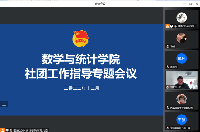 为确保我院社团工作规范有序开展,充分发挥学生社团的重要作用,展现我院社团文化风采,williamhill英国官网关工委于12月17日组织开展社团工作指导专题会。参加本次会议的有数统学院关工委常务副主任郭文华老师、各学生社团指导老师以及负责人。