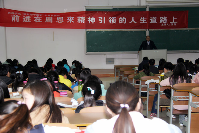 周恩来在南开上大学的时候成绩优异,各科考试成绩名列前茅且积极参加各种社团活动,为自己后来的革命生涯打下了坚实的基础。汪老师指出:青年人年轻的时候是打基础、打基石的最佳时期,要刻苦学习文化知识,锻炼自己各个方面的能力。越是优秀的学生他今后的人生越是充满光明。