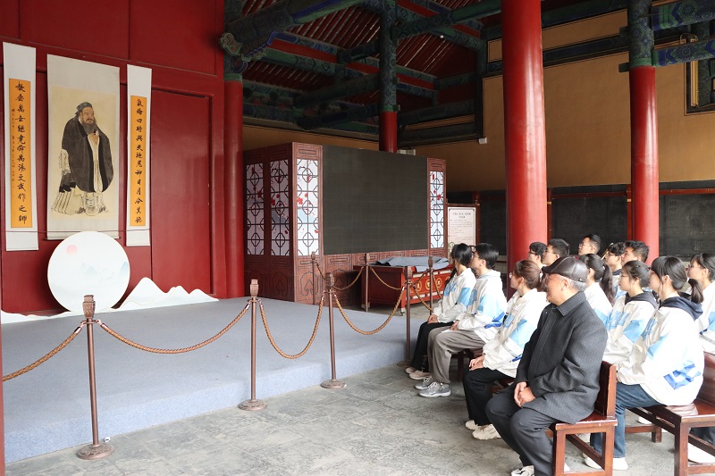 在曲阜孔庙万仞宫墙下,大家聆听了孔子及儒家思想概述;在孔庙杏坛前,大家感悟了“不义而富且贵,于我如浮云”;在“戒贪图”前,大家驻足凝视:一只猛兽,贪婪至极,妄想吞日,一跃而起,坠海而卒。通过现场教学,大家深刻感受到了中华优秀传统文化的智慧力量,一致认为,这既是一场实景式的现场教学,更是一堂生动的微党课,将中华优秀传统文化内涵、高校教师师德修养和师范生核心价值观塑造有机结合起来,大家的思想得到洗礼,党性得到了锤炼。学生党员吉羽彤表示自己作为一名定向师范生,非常珍惜这样一次文化研学之旅,认真汲取2000多年前中国圣贤的智慧,将在孔子故里感受到的文化气息、人文气质带到平时的数学专业学习和个人全面发展中,不断加强自身道德修养,做一名德才兼备的新时代师范生。