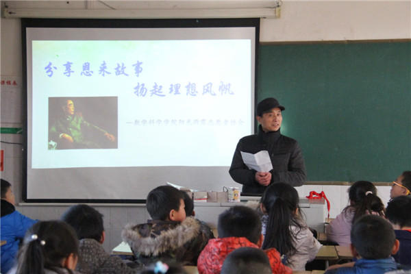 活动开始前,小朋友们端端正正的坐着,一张张稚嫩的脸上满脸期待地望着黑板。首先由马强老师深情满满地朗诵周恩来的诗词,鼓励同学们像周恩来一样拥有“为中华崛起而读书”的鸿鹄壮志,现在起,努力学习文化知识,将来为祖国增光添彩。接着,志愿者们通过动画视频讲述周恩来故事,与小朋友们形成互动知识竞答,让小学生们更多地了解周恩来总理,更好地学习周恩来精神。