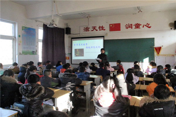 下午两点半,马强老师带领青年志愿者们到达实验小学,在走进小学校园的路途中,看到一个个稚嫩的小孩们在跳绳、打乒乓球、追逐打闹,仿佛一个个小精灵似的,天真烂漫,活泼可爱。小小的校园里弥漫着一片活力满满的气氛。志愿者们在实验小学大队辅导员韩争艳老师的带领下来到四年级九班,一到门口,这些可爱的孩子们迫不及待地出门,一口一声“大哥哥”“"大姐姐”的叫着,像冬日里的一缕阳光,暖暖的。