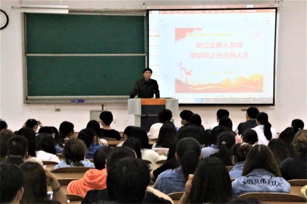 会议伊始,马强老师以“树立正确的入党观,用信仰之光点亮人生”作为本次培训会的主题,他提出用信仰的追求去认识自己,确立为民奉献、听党指挥的正确入党观,并以袁隆平院士为例,向同学们深度剖析了信仰对于入党的重要性,告诫同学们不可将入党作为人生的跳板。在此之后,马老师强调信仰的确立需要真诚的态度,用真实和忠诚去形成一种明确的思想形态,凭借努力和奋斗,去提高自己的思想境界,为能够成为一名合格的党员奠定基础。最后,马老师向大家介绍树立正确入党观的基本要求,从树立共产主义理念、牢记全心全意为人民服务的宗旨、自觉接受党组织的培养教育、加强理论学习四个方面深刻阐述了党员的高尚与伟大之处。