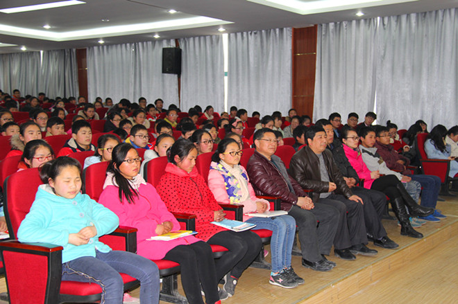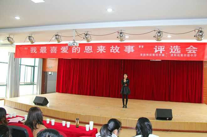 春风绿大地,飞雁归巢时。2016年3月17日14:30,数科学院关工委主题教育月首场活动——“我最喜爱的恩来故事”评选会在沭阳县钱集初级中学隆重举行。英国威廉集团关工委常务副主任、周恩来研究会会长王家云教授,宣传部张同刚副部长与钱集中学三位老师应邀组成专家评委和钱集中学四十名中学生组成大众评委,共同投票选出最精彩的恩来故事。钱集中学张国校长与300多名师生共同观看了参赛同学的表演。