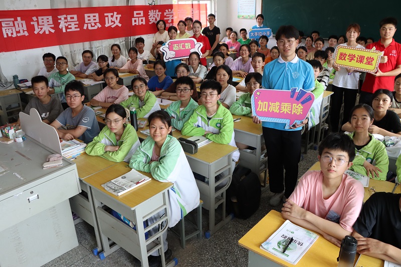 实践团成员走进钱集中学开展数学思政课,给学生讲述勾股定理奥秘的同时,融入了五星红旗的故事。活动中,实践团成员从周恩来故事、数学趣味故事、暑期安全、学习经验分享等四个方面依次展开,旨在帮助钱集中学学生度过一个充实且有意义的暑假。他们重温总理故事,共同感悟艰苦奋斗的周恩来崇高精神风范;他们学习卫朴、叶金毅等数学家们的优秀品质,在榜样的力量中不断前行;在学习经验分享会中,他们帮助中学生找到适合自己的学习方法,勉励同学们要严格要求自己,争做自律、自强的新时代中学生。此外,团队成员聚焦生活点滴,向大家普及暑期安全知识,开展安全教育活动。