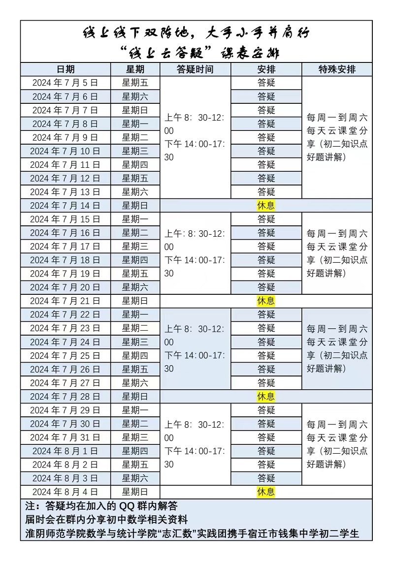 团队成员有计划地安排和落实了线上答疑的时间与任务,以线上课堂的形式与钱集中学初二学生进行了“面对面”的交流。中学生则就自身学习、生活中的难题向大学生请教询问,或主动与大学生分享活动感想、生活趣事。钱集中学八年级杨佳怡同学认为,自己一直很苦恼暑假期间没有老师可以请教答疑,现在有了“志汇数”云课堂,不仅可以通过知识点好题讲解视频学习,还能与大学生哥哥姐姐交流成长的困惑、学习数学学习方法、探讨数学解题的思路,自己对即将到来的九年级充满信心!