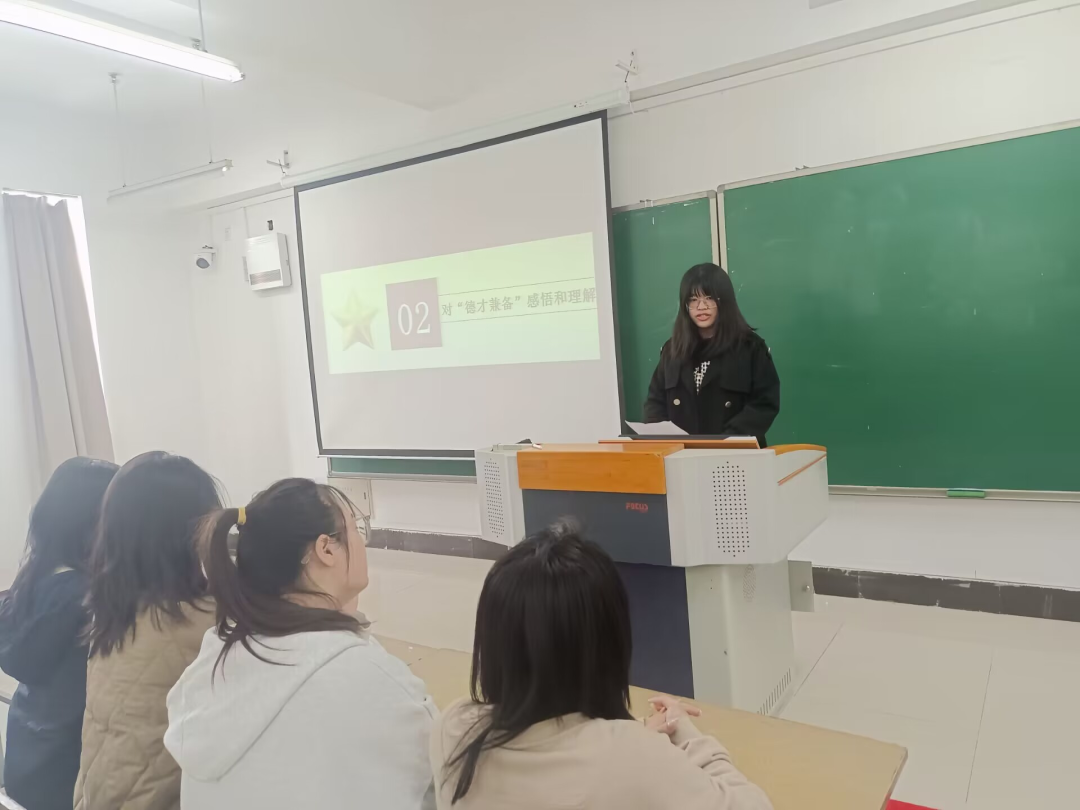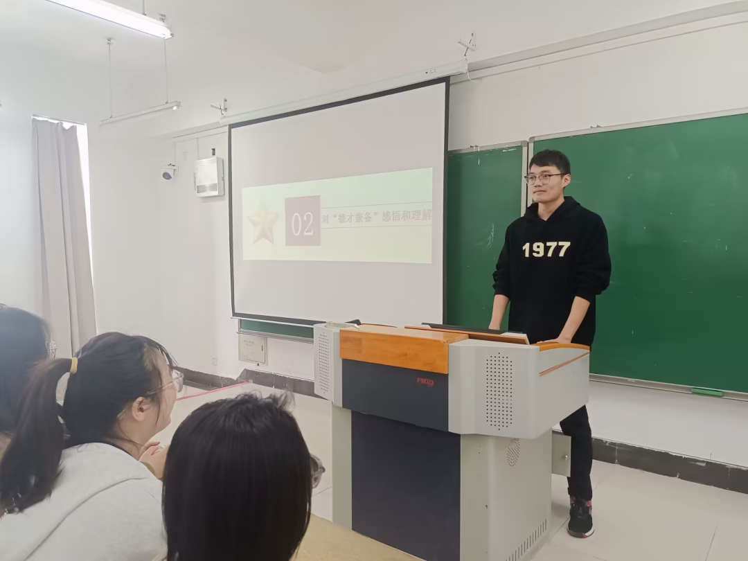 然后,王一鸣同学通过深化道德认知、强化道德养成、突出道德实践和掌握“德”与“才”的辩证统一关系四个专题来进一步告诉同学们应该如何“德才兼备,全面发展”。