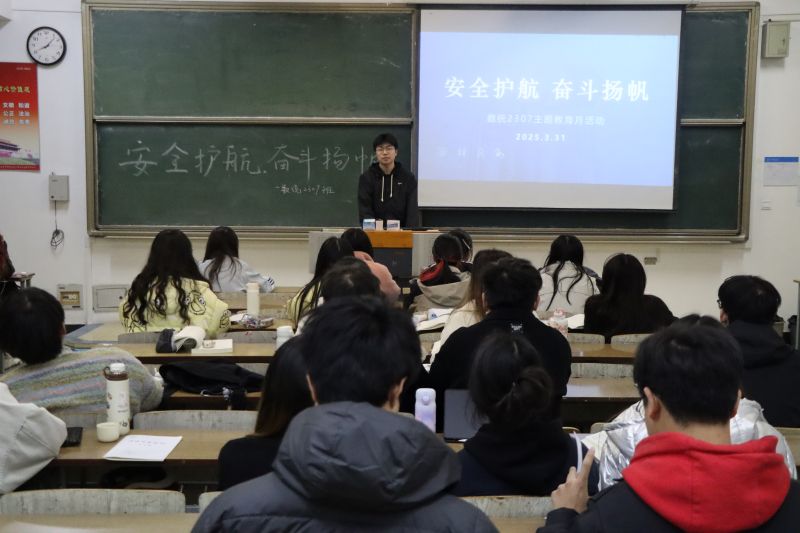 为推动“安全护航,奋斗扬帆”主题教育月活动深入开展,进一步增强同学们的安全意识,促进心理健康,强化国家安全观念,3月31日晚,数统学院2307班在崇文3-204围绕“安全护航,奋斗扬帆”主题,成功开展了一系列丰富多彩的班团活动。