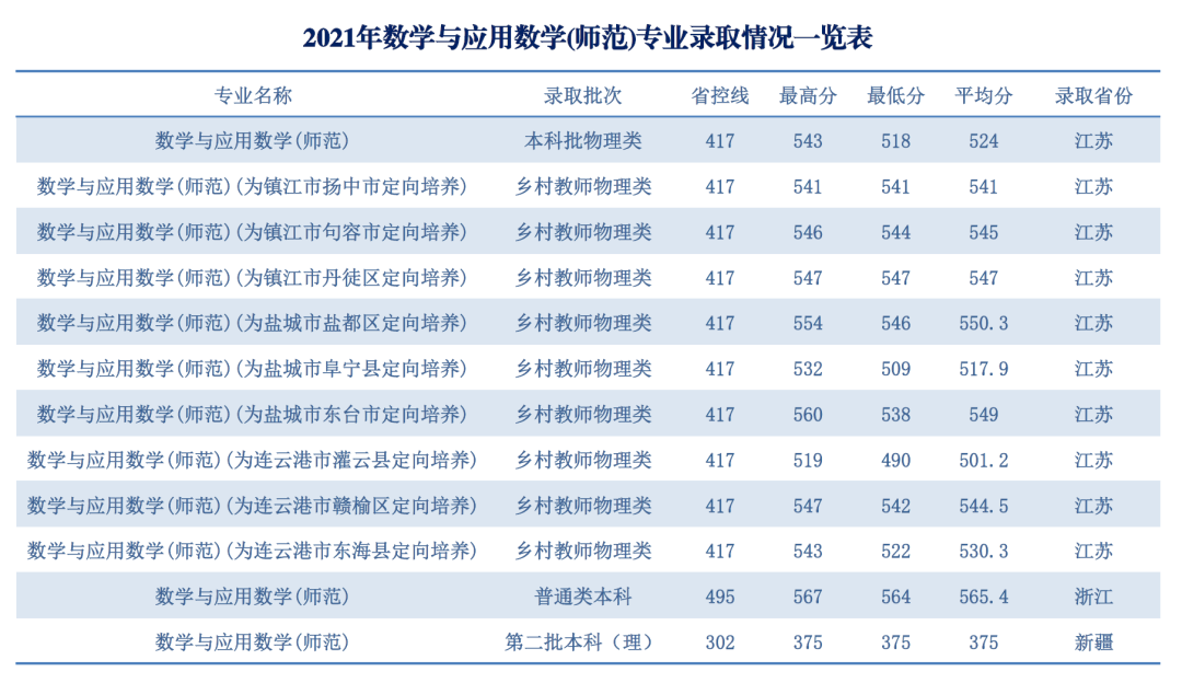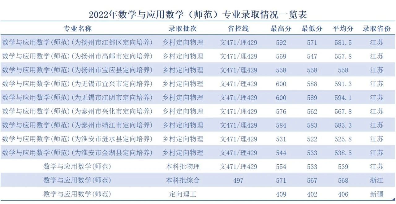 数学与应用数学专业为国家一流本科专业,数学学科为江苏省重点建设学科。本专业具有60余年的办学历史,专业师资力量雄厚,教学条件优良,学生学习风气浓。毕业生就业竞争能力强,深受用人单位的欢迎,近年来就业率均保持在98%以上,其中考研考编率已连续多年保持在70%以上。直接就业的学生主要在中小学从事数学教学和教学研究,能胜任班主任工作和其他教育工作,很多毕业生成为江苏教育战线、机关企事业单位的中坚力量。