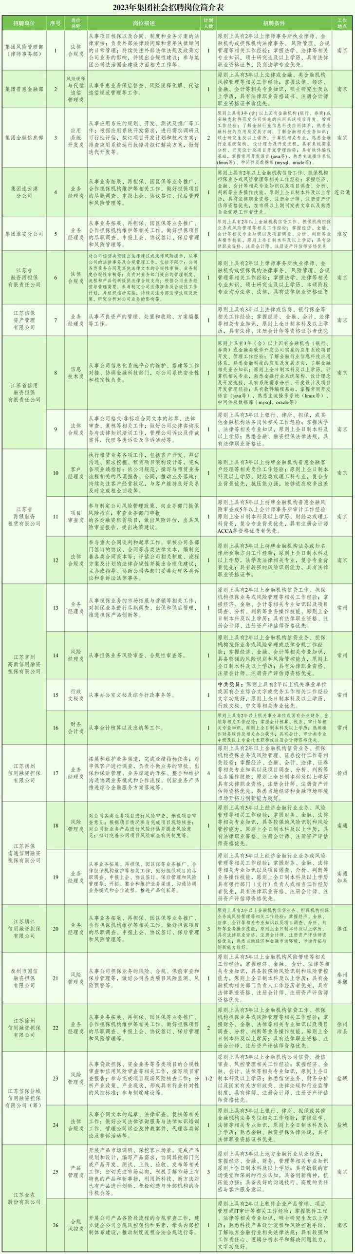 4、江苏省再保融资租赁有限公司:客户经理岗1人、项目审查岗1人、法律合规岗1人;
