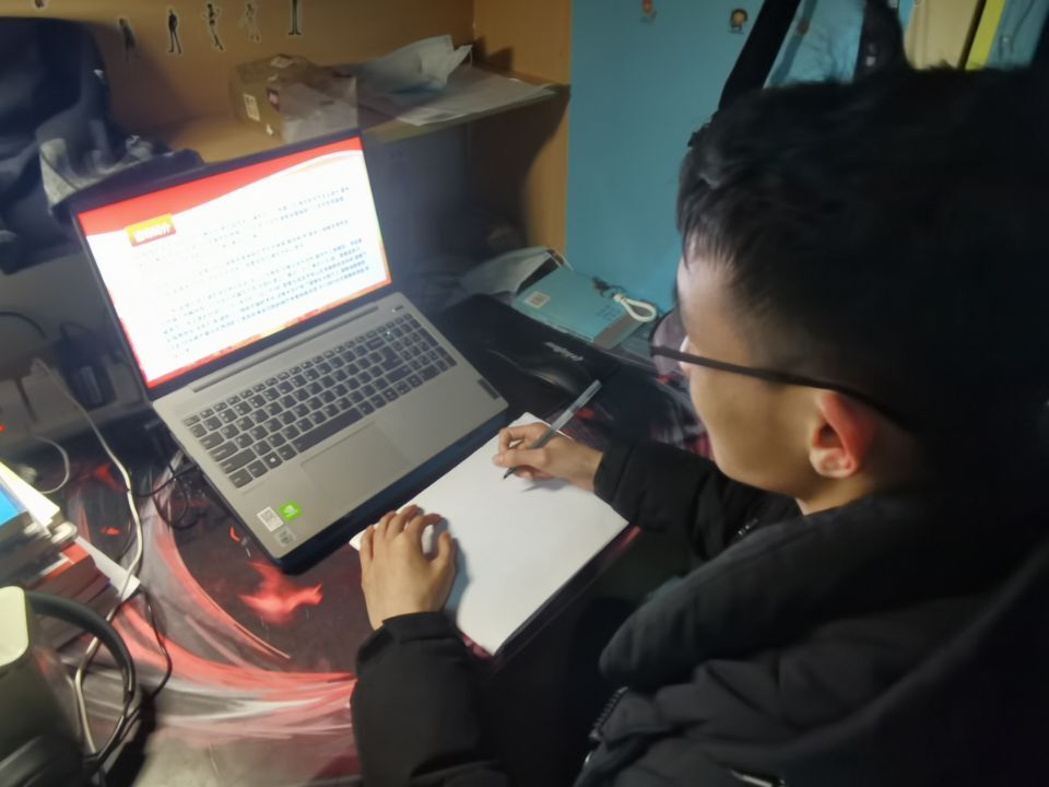 图为同学对会议内容进行记录。 记者 戴书坤 摄