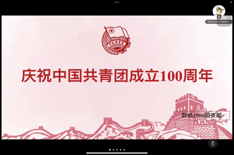 翔宇网5月13日电 记者(居佳艺)为提高同学们的责任意识,提升爱国热情,5月12日晚,数统1906班开展了庆祝中国共青团成立100周年线上主题团日活动,本次活动由团支书张源主持。