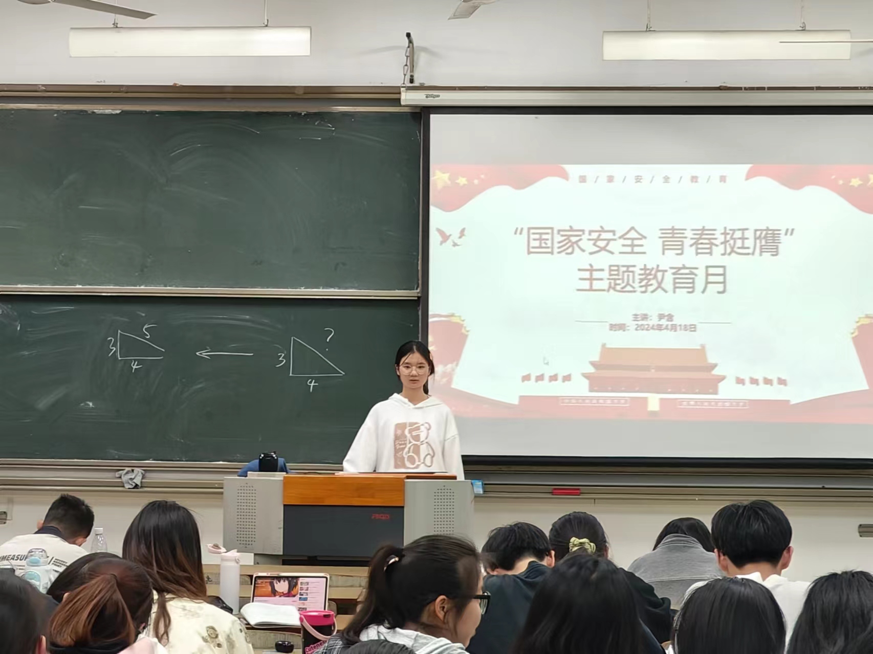 在这个春意盎然的季节里,一场以“国家安全,青春挺膺”为主题的班级主题大讲堂团日活动于4月12日在崇文楼306教室成功举办。此次活动由2107班尹含同学主持,班级同学全体参加。此次活动旨在深入贯彻落实党的二十大和二十届二中全会精神,引导广大学生深入学习贯彻总体国家安全观,提升国家安全意识和素养。