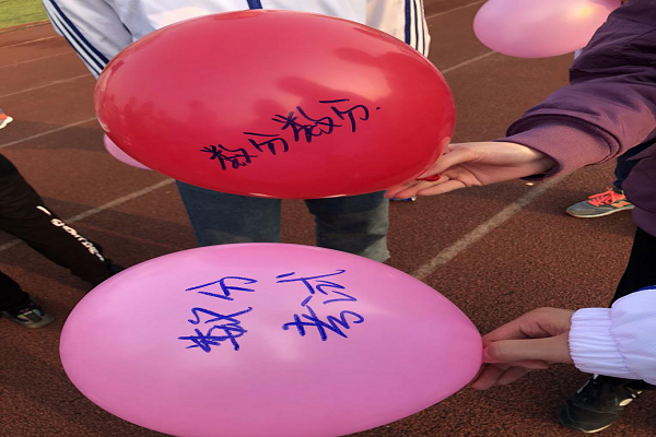第二个活动:七彩连环炮。大家将自己的烦恼写在吹好的气球上,并且踩破气球。该环节培养学生团结合作意识,踩破带有烦恼的气球的同时,既培养思考能力和实践能力,又有效的释放学生的心理压力。