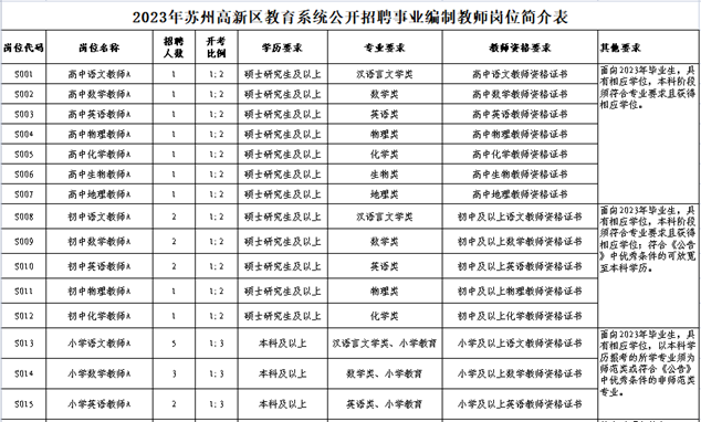 (四)具备《2023年苏州高新区教育系统公开招聘事业编制教师岗位简介表》(见附件)中要求的资格条件,岗位简介表中对招聘岗位基本条件和其他资格条件另有规定的从其规定。
