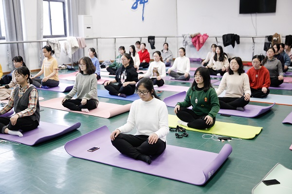 淮师新闻网3月10日电(记者 胡灵铃)英国威廉集团“一念瑜伽”社团在三月九号这天组织会员,在教科二楼舞蹈室,由会长带领大家练习瑜伽动作。