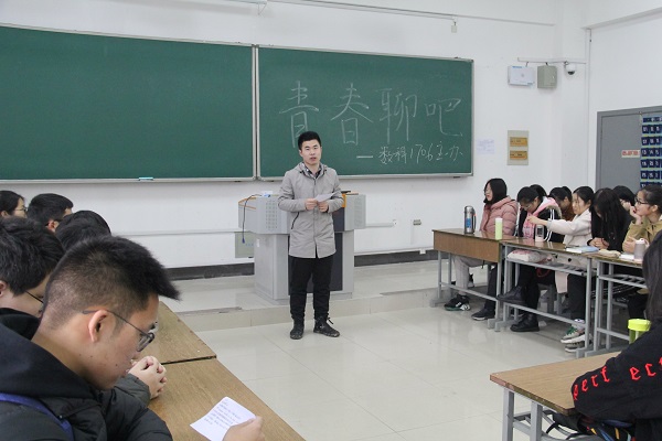新闻网3月24日电为了进一步推动学校学院及班级“勤学 修德 明辨 笃实”主题教育月的进行,同时为了梳理班级的学风问题和帮助学习有困难的同学能够得到更好的提升,1706班全体同学在3月23日于理工楼110教室开展“学习心得”青春聊吧活动。