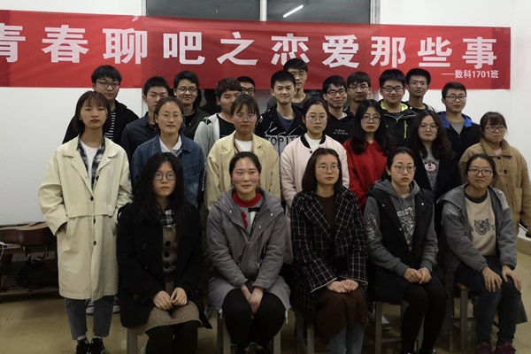 翔宇网4月2日电(记者 华佳俊)有关爱情,无数诗人作家歌颂过它。但是爱情是什么,好的爱情是什么样的,什么才是真正的恋爱相处模式,等等问题也许正在困扰着许多大学生。为了解决这些问题,同时推进主题教育月“明辨”主题活动的进行,数科1701班全体同学于4月2日晚在16号楼502大厅开展“恋爱那些事”青春聊吧活动。