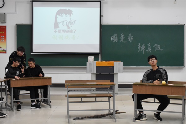 翔宇网4月7日电(记者 陈芊羽)大学生被网络欺诈的事件屡见不鲜,诈骗犯罪可谓“与时俱进”,手法翻新,层出不穷、防不胜防。为了让同学们学会警惕网络诈骗信息,不上网络诈骗的当。4月3日晚上,数科学院1804班团支部于理南103开展“明是非,辨真假”主题教育月团日活动。16级祖正龙同学、17级的学生干部和18级各班班长团支书们参加了观摩活动。