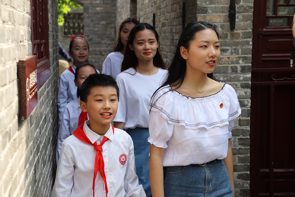 图为共青团员带领少先队员走入周恩来童年读书处。记者 王聚荃