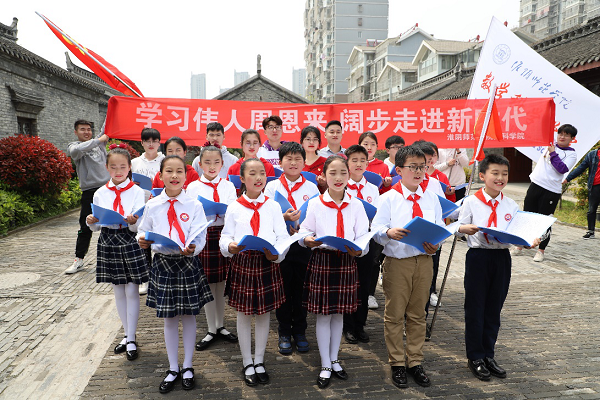翔宇网4月17日电(记者 赵梦月)阳春四月,春意盎然,为了进一步感悟、学习、继承周恩来精神,纪念“五四”运动一百周年,践行当代大学生的责任感与使命感。2019年4月14日,淮师数科1606班同学怀着对周总理的敬仰,走进周恩来童年读书处展开“追寻伟人足迹,弘扬恩来精神”活动。