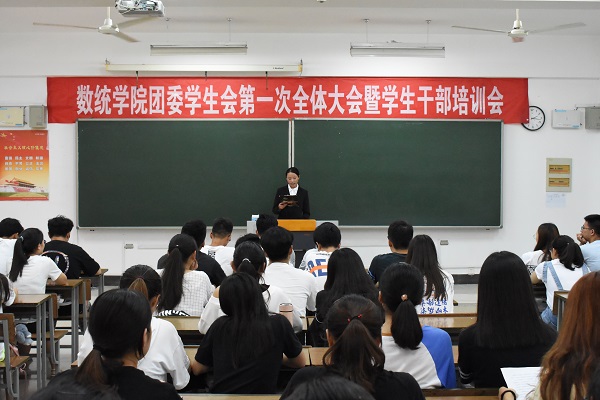 王聚荃主席从责任和能力两个方面展开话题。他指出,学生干部必须首先履行好作为学生的责任与义务,同时兼顾好部门工作,要度过一段磨合期来达到一种平衡。其次,所谓学生干部,学生是本质,干部是职责,学生干部不是高人一等,要正确地定位自己,不能滥用职权。接下来由团委副书记陆瑶发言,陆瑶副书记对前一任全体学生会团委成员的努力作出了肯定,并总结了前一年学生会团委的工作不足,便于改进。为提醒在座各位充分发挥学生干部作用,陆瑶对学生会团委未来的工作进行详细部署,鼓励大家继续书写数统学院的辉煌。各部长及副部长也纷纷上前进行简短的自我介绍,阐明自己所在部门职责。