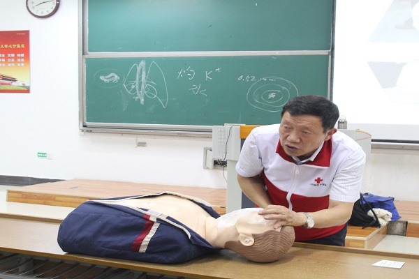 讲座主要分为三部分:现代救护新概念、紧急救护“五项技术”和在座学生现场模拟。讲座伊始,王兆军介绍了红十字运动的宗旨和使命,红十字运动旨在防止并减轻人类疾苦,保护人的生命和健康,维护人类尊严。与传统救护不同,现代救护主要立足于现场抢救。王老师结合生动形象的幻灯片,就同学们在生活中可能会遇到的突发事件及相应的急救处理措施进行讲解介绍,语言通俗易懂。接着,王老师拿出婴儿模型以示范婴幼儿气道堵塞急救方式方法,邀请在座同学体验成人气道堵塞急救过程,用人偶演示心肺复苏的操作方法,并强调现场救护的重要性。王兆军指出,急救知识理论与生活实例结合,才能为生命保驾护航。整个讲座过程气氛轻松愉悦,同学们与老师互动频繁。