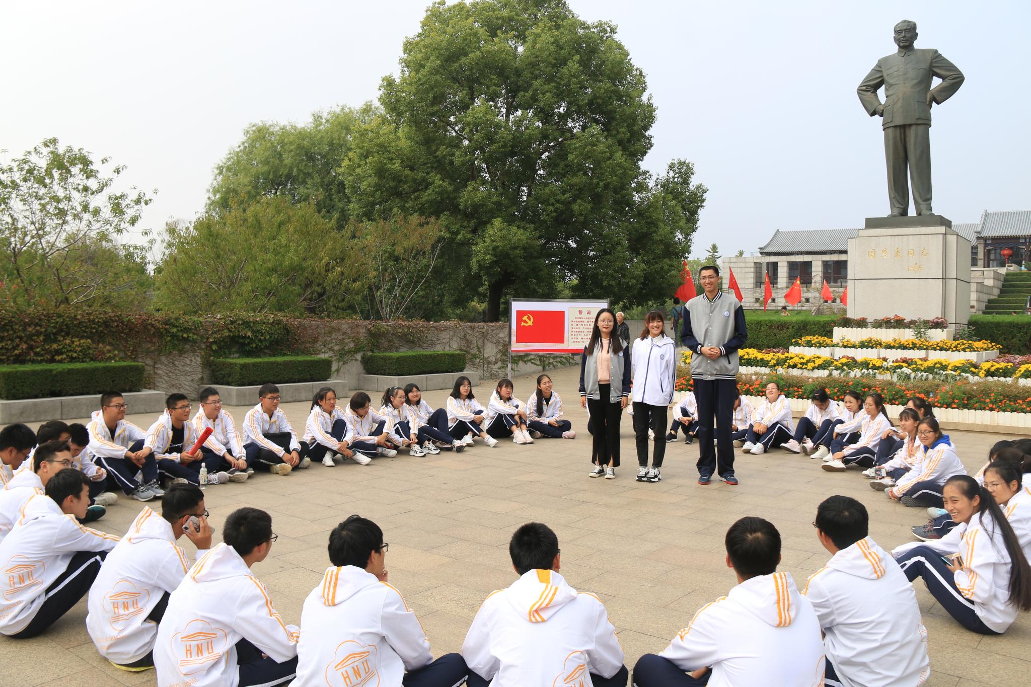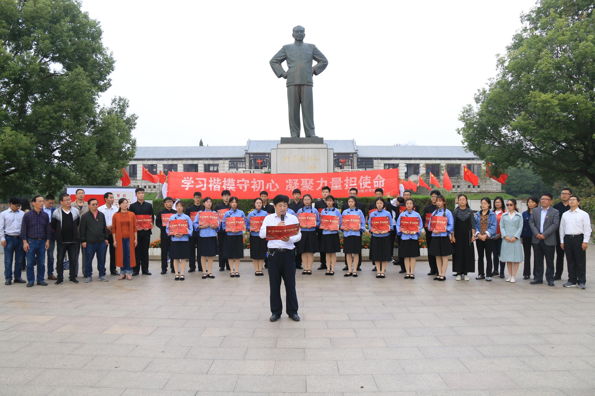 全体师生列队在周总理铜像前,数统学院党委书记柏传志首先发表讲话,他阐述了本次主题教育活动的重要意义,要求教师始终以周恩来精神为引领,坚定理想信念,立足本职,为学生成长成才服务,为学院与学校的事业发展勇于担当;要求学生始终以创建周恩来班为契机,学习楷模精神,积极践行,努力提升综合素质,为将来更好的报销祖国夯实基础、完善自我。