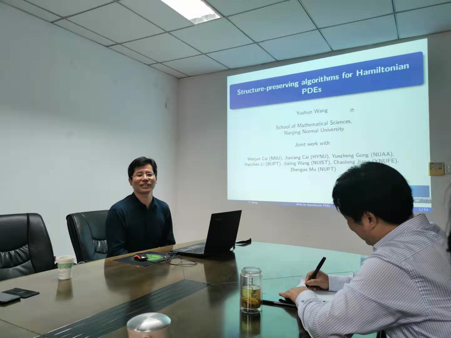 2019年10月12日下午,南京师范大学数学科学学院博士生导师王雨顺教授和严从华教授应邀在理工北楼301室分别作了题为 “偏微分方程保结构算法及其应用”与 “ Linear fuzzifying uniformities”的学术报告。数统学院柏传志教授主持了此次报告会。数统学院的部分教师聆听了此次报告。
