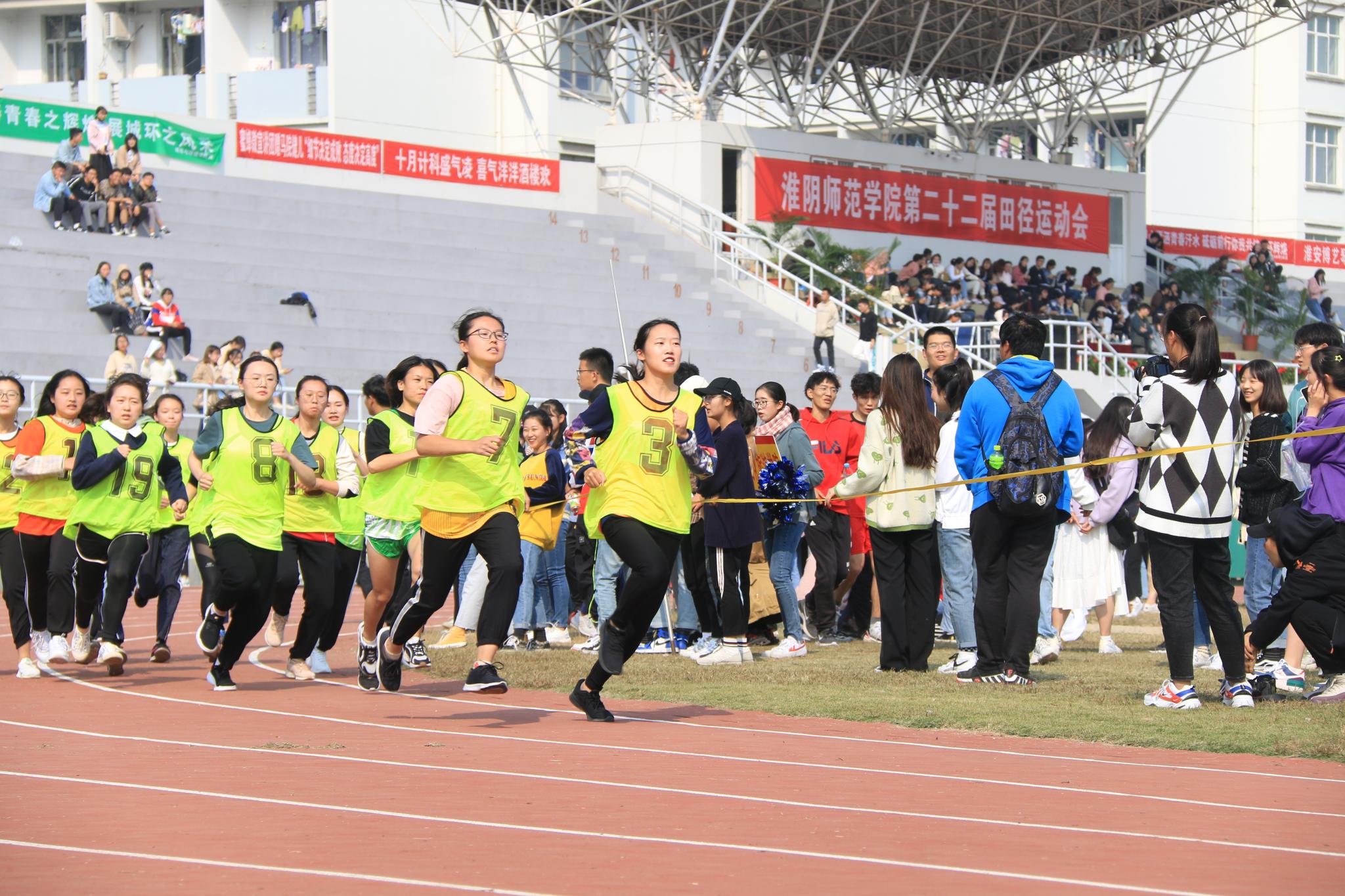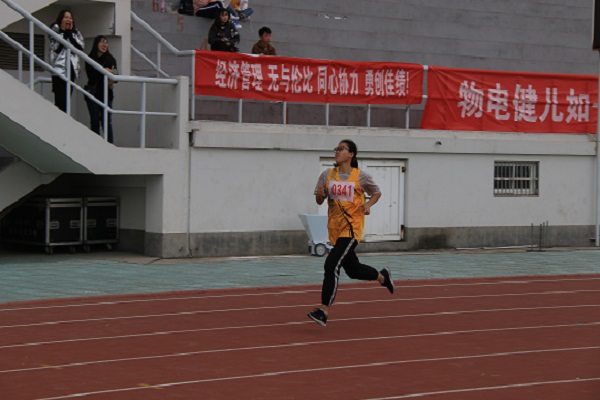 赛程过半,卫树婧同学的加速让场面一度紧张起来,这是第一名与第二名的角逐,更是比拼运动员心态、毅力与体力的时刻。全场数统学子呐喊着为卫树婧加油鼓气,为她助力。临近终点线,卫树婧开始全力加速,摘得桂冠。