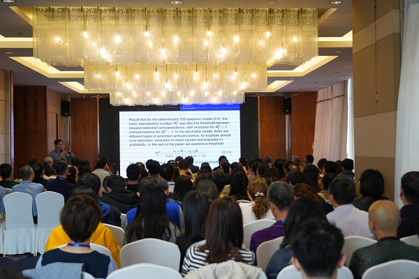 开幕式后,毛学荣教授、朱怀平教授、德国罗斯托克大学黄森忠教授、香港理工大学何岱海教授、香港中文大学医学院赵时博士,国家杰出青年基金获得者余宏杰教授、柳振鑫教授、国家优秀青年基金获得者冀书关教授、葛颢教授、吴付科教授、周栋焯教授,中国生物数学会副理事长王稳地教授和靳祯教授,以及雷锦誌教授、唐三一教授、许勇教授尹洪位教授、原三领教授、高道舟教授、宋卓异研究员和彭志行教授等做了大会邀请报告。报告内容涉及随机动力系统、种群动力系统、传染病防控以及环境污染、公共卫生等多领域热点问题。我校传染病防控团队的骨干成员蔡永丽副教授也向大会汇报了近几年的研究成果。