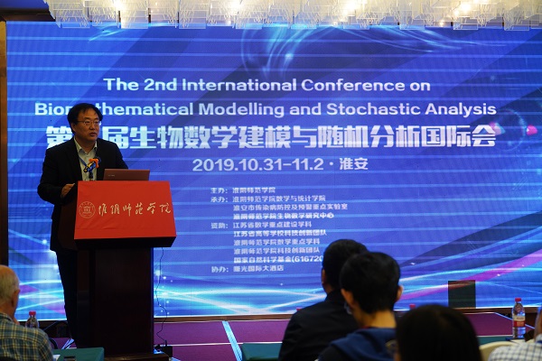 淮师新闻网11月4日电(记者 朱守丽)金秋送爽,桂花飘香。2019年10月31日—11月3日,“第二届生物数学建模与随机分析国际研讨会”在英国威廉集团隆重召开。来自英国Strathclyde大学、加拿大York大学、德国罗斯托克大学以及中国香港理工大学、香港中文大学和中国科学院大学、北京大学、清华大学、复旦大学、上海交通大学、西安交通大学、华中科技大学、西北工业大学、南开大学、吉林大学、大连理工大学、陕西师范大学、西北师范大学、南京医科大学、新疆医科大学、宁夏医科大学等高校及科研院所的100多位专家、学者参加了本次会议。williamhill英国官网院长郭嵩以及校生物数学团队成员参加了开幕式。