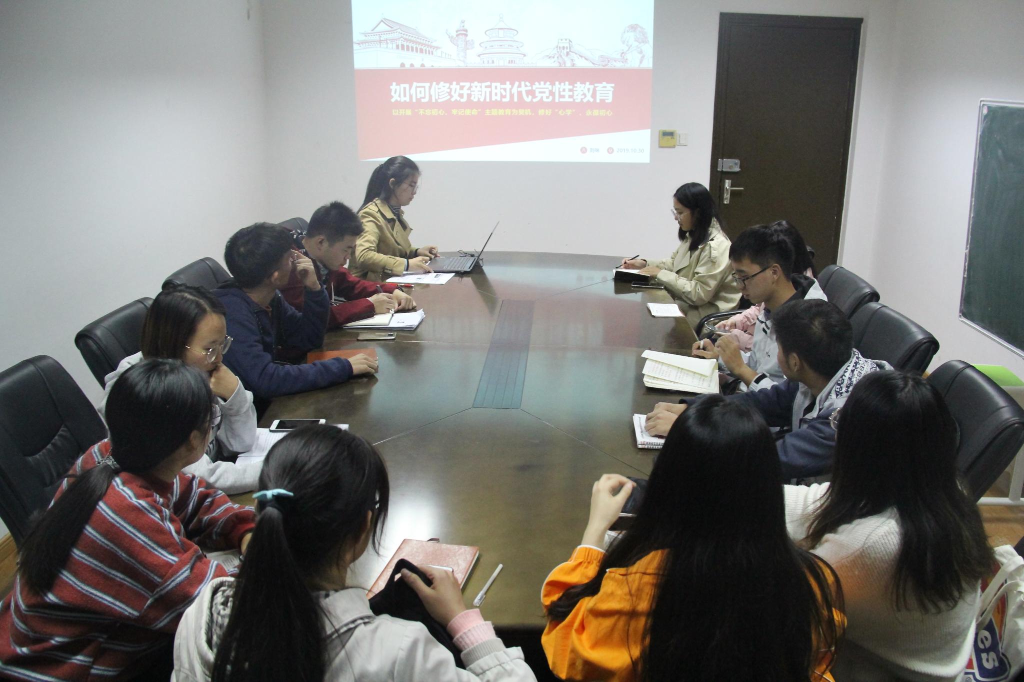 翔宇网10月31日电(记者 杨轲旭)为加强党员党性修养,提高党员政治思想觉悟,10月30日,数统学院师生联合第一党支部在理北301开展“如何修好新时代党性教育”主题教育党课。本次党课由该党支部书记刘咪主讲,2017级学生党员参加。