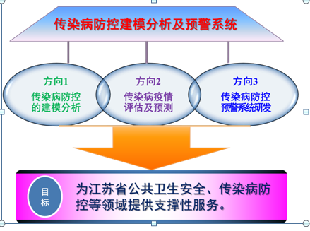 “传染病防控的建模分析及预警系统”团队是由我院、计算机科学与技术学院、城市与环境学院部分教师,联合南京医科大学、淮安市疾病预防控制中心、淮安市传染病医院组成。主要围绕下述三个方向开展理论研究和应用开发: