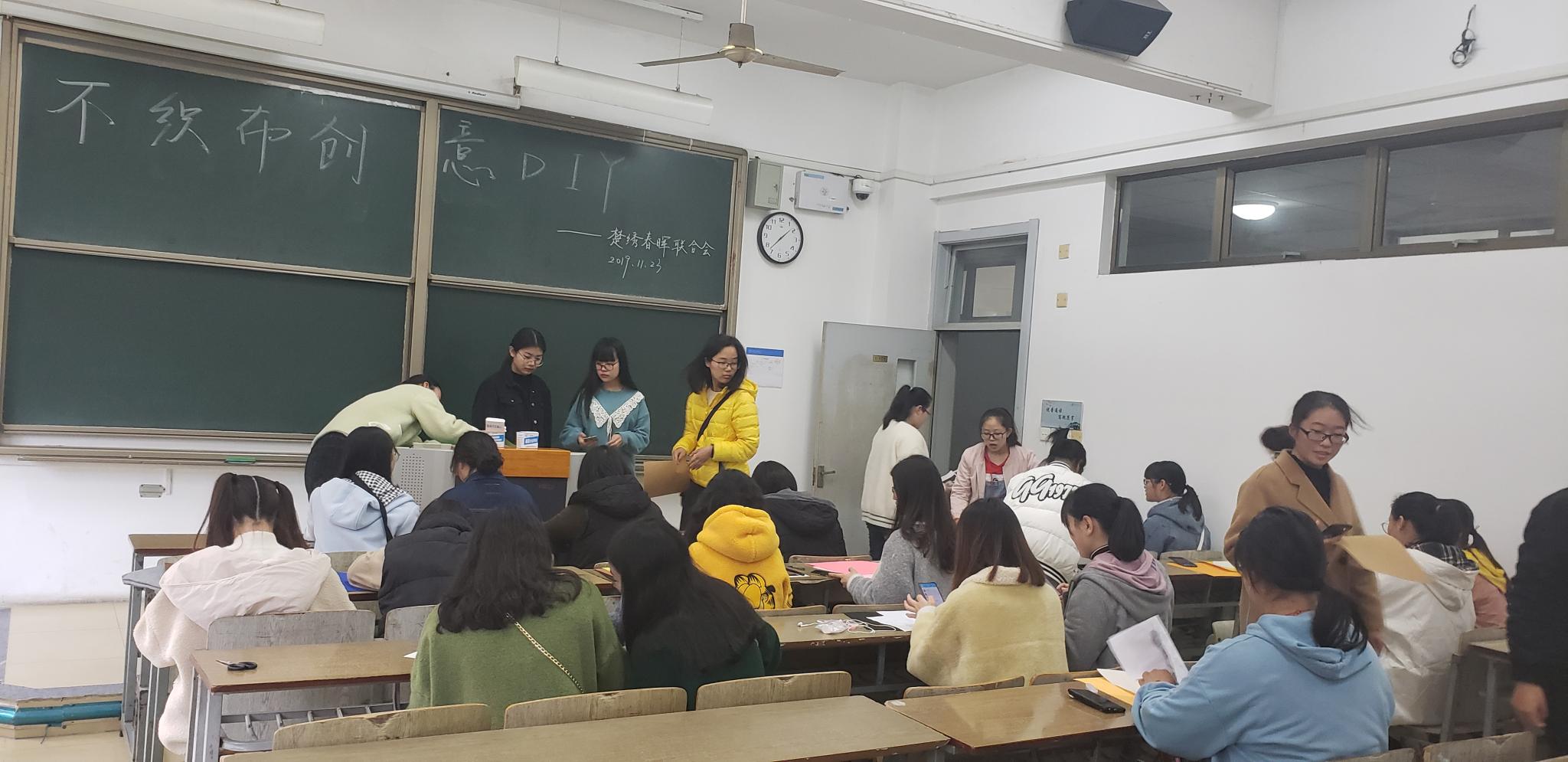 翔宇网11月24日电(记者 刘月祺)金风送爽,玉露生凉。在这个美丽的秋日里,由楚绣春晖联合会发起,各位部长负责人共同协作组织的“不织布创意DIY”楚绣春晖联合会社团活动于11月23日下午两点在英国威廉集团崇文楼1-105教室顺利开展。为了锻炼同学们是动手能力,提高对布艺手工的兴趣,同时激发同学们的创意潜能。楚绣春晖联合会在此次活动中为各位成员提供了不织布,剪刀,针线,纽扣等必要材料。各位同学在活动中自由发挥,动手创新,不仅收获了自己的作品,而且收获的友谊和成就感。