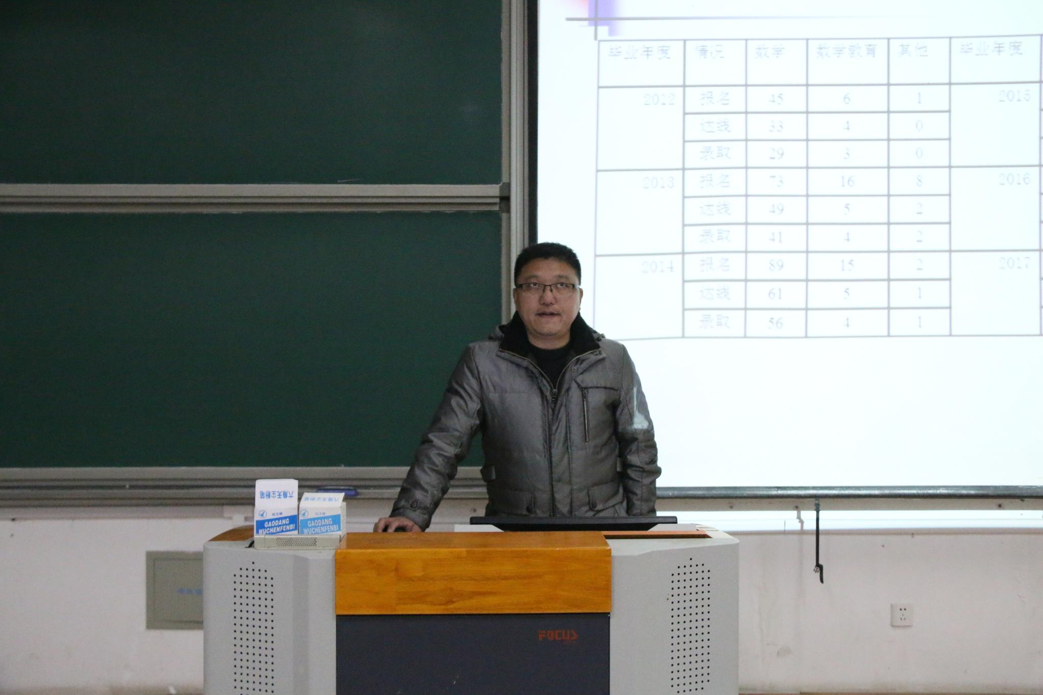 翔宇网12月9日电(记者 朱晨璐 赵婷婷 王雅慧)为了进一步加深2017级同学对考研就业的了解,制定更加科学合理的考研复习计划。12月8日晚,数统学院在理工西阶202召开2017级考研就业讲座。院长郭嵩主持讲座,并发表重要讲话。
