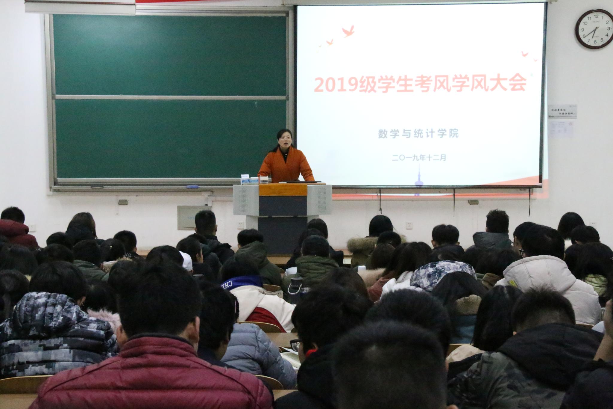 翔宇网12月20日电(记者 王雪 史凯瑶 杨轲旭)12月19日,数统学院在理工西阶202开展2019级学生考风学风大会,旨在端正学生思想态度,严肃考风学风。党委副书记谢海燕出席会议并发表重要讲话。数统学院1706班学生王柳、1705班黄兰依次分享学习经验。